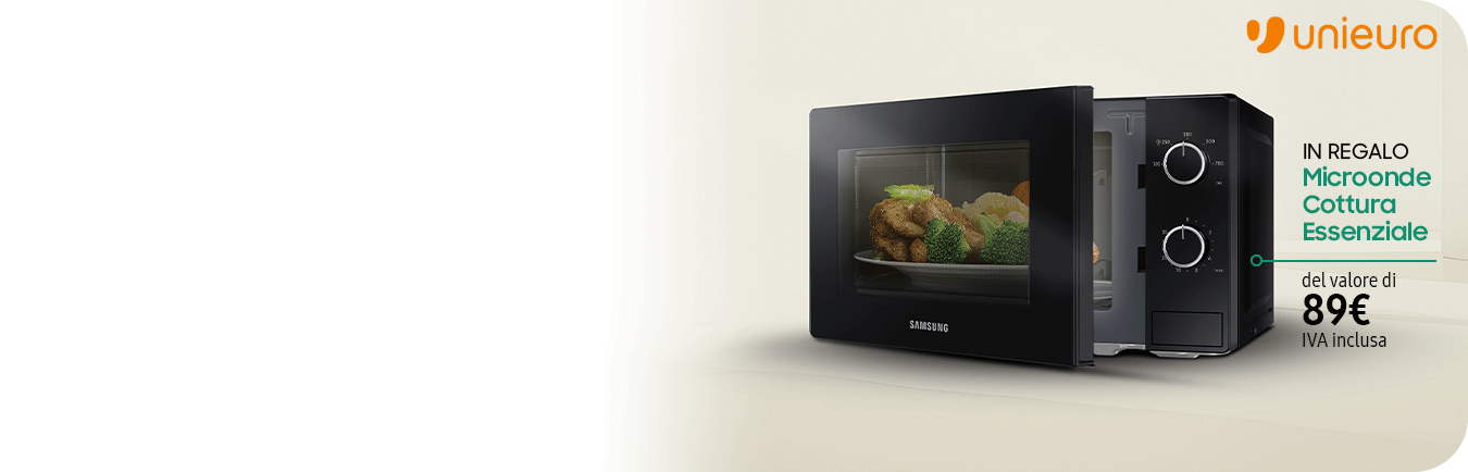 Acquista un elettrodomestico Samsung in promozione dal 27 ottobre al 5 novembre 2025 inclusi. Registrati qui entro il 5 dicembre 2025 per ricevere il microonde Cottura Essenziale entro 180 giorni dall'email di validazione.