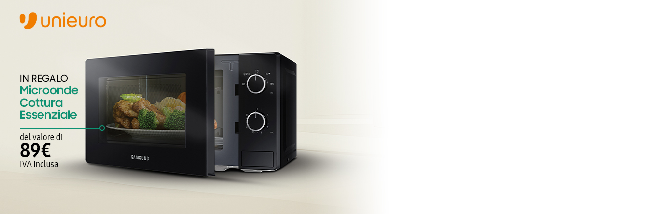 Acquista un elettrodomestico Samsung in promozione dal 27 ottobre al 5 novembre 2025 inclusi. Registrati qui entro il 5 dicembre 2025 per ricevere il microonde Cottura Essenziale entro 180 giorni dall'email di validazione.
