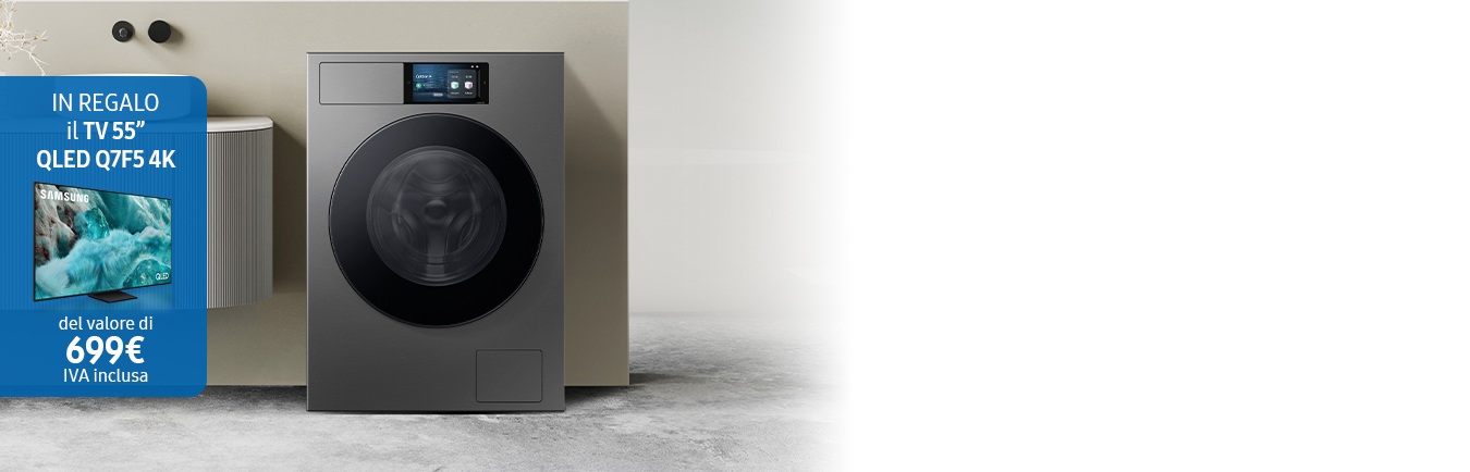 Acquista la lavatrice WF90 in promozione dal 9 al 31 ottobre 2025 inclusi. Registrati qui entro il 30 novembre 2025 per ricevere un TV QLED 55" entro 180 giorni dall'email di validazione.